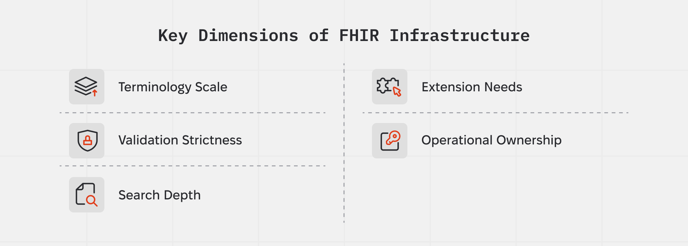 This article addresses that gap. Many decision-makers sense the pressure points but lack a structured way to connect them to the capabilities of the FHIR layer. To support that evaluation, the article introduces a framework built around five dimensions that consistently influence system behavior: terminology, validation, search execution, extensibility, and operational ownership.