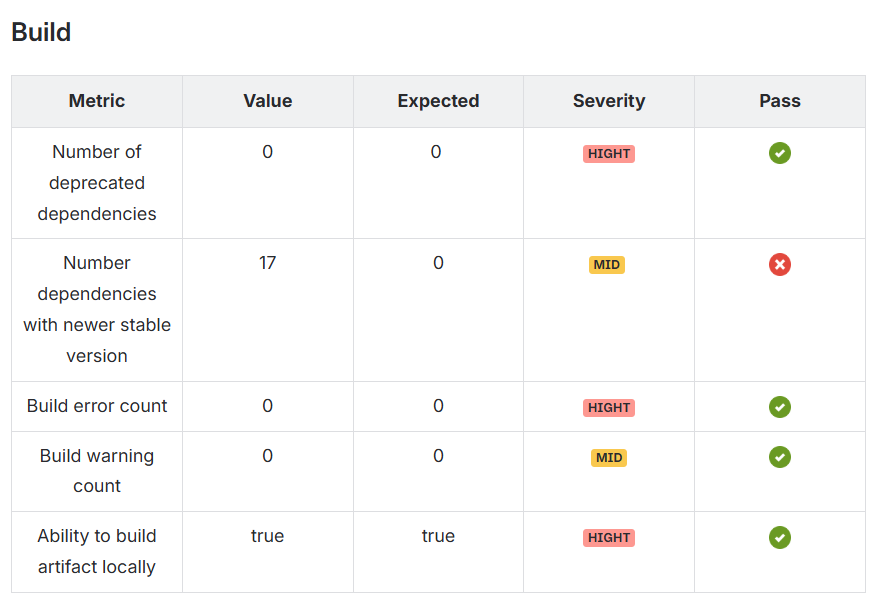 In some of our audits, the builds ran without errors — but they still failed key maintainability checks. In one case, 12 deprecated dependencies were still in use. In both, dozens of libraries were behind their latest stable versions (84 in one case, 17 in another).