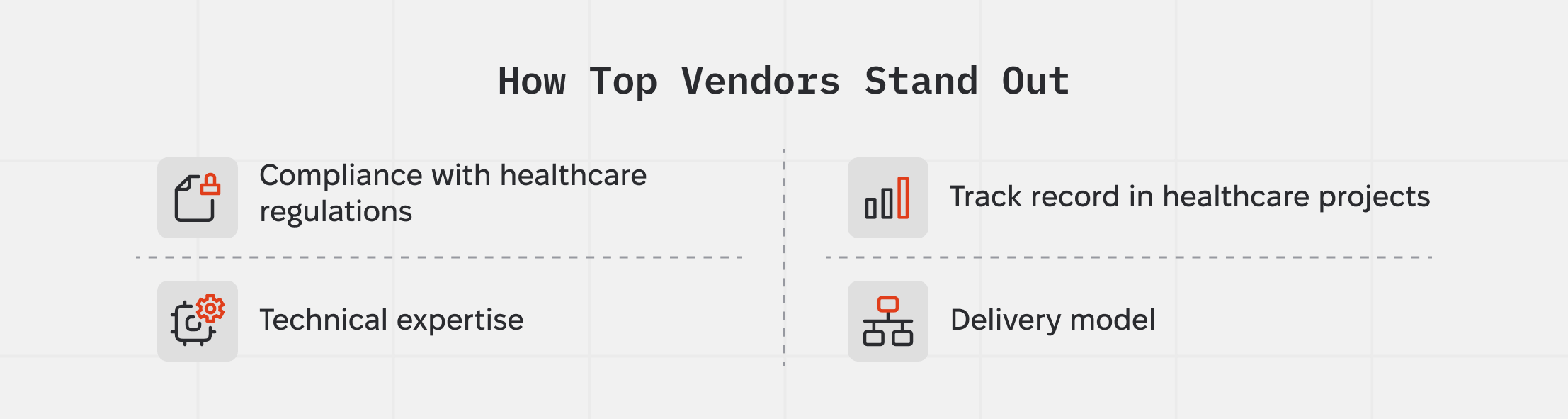 Choosing the right healthcare software development partner requires more than checking portfolios. The companies in this list were assessed against four criteria that define real leadership in this market and in the broader HealthTech sector: