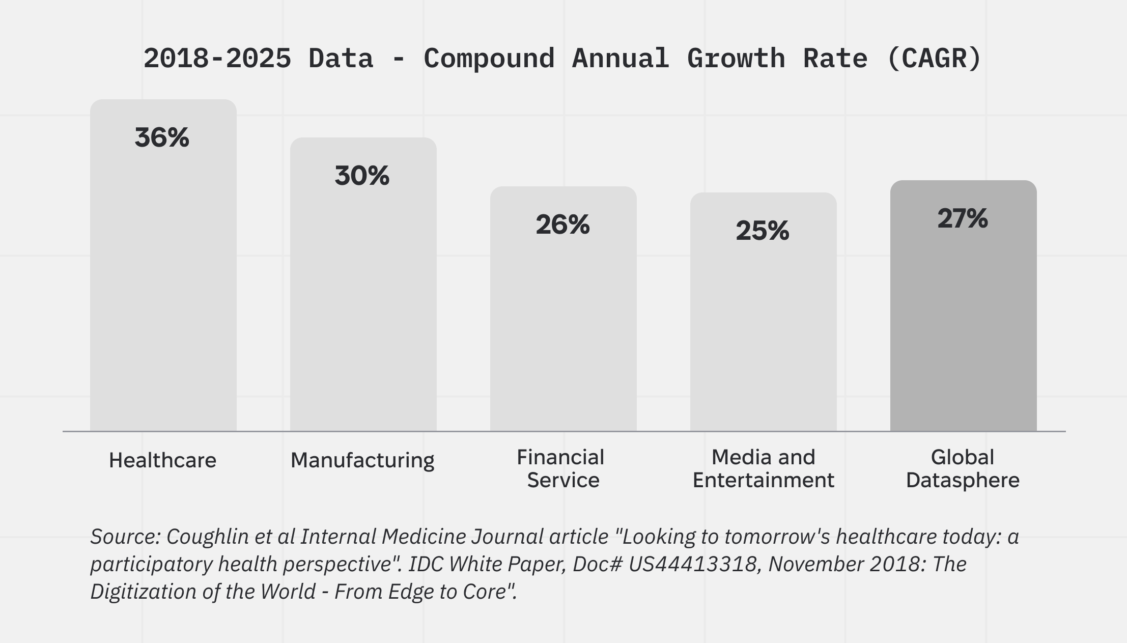 Healthcare data already accounts for nearly 30 % of the world’s generated data—and it’s on track to grow at about 36 % annually through 2025.